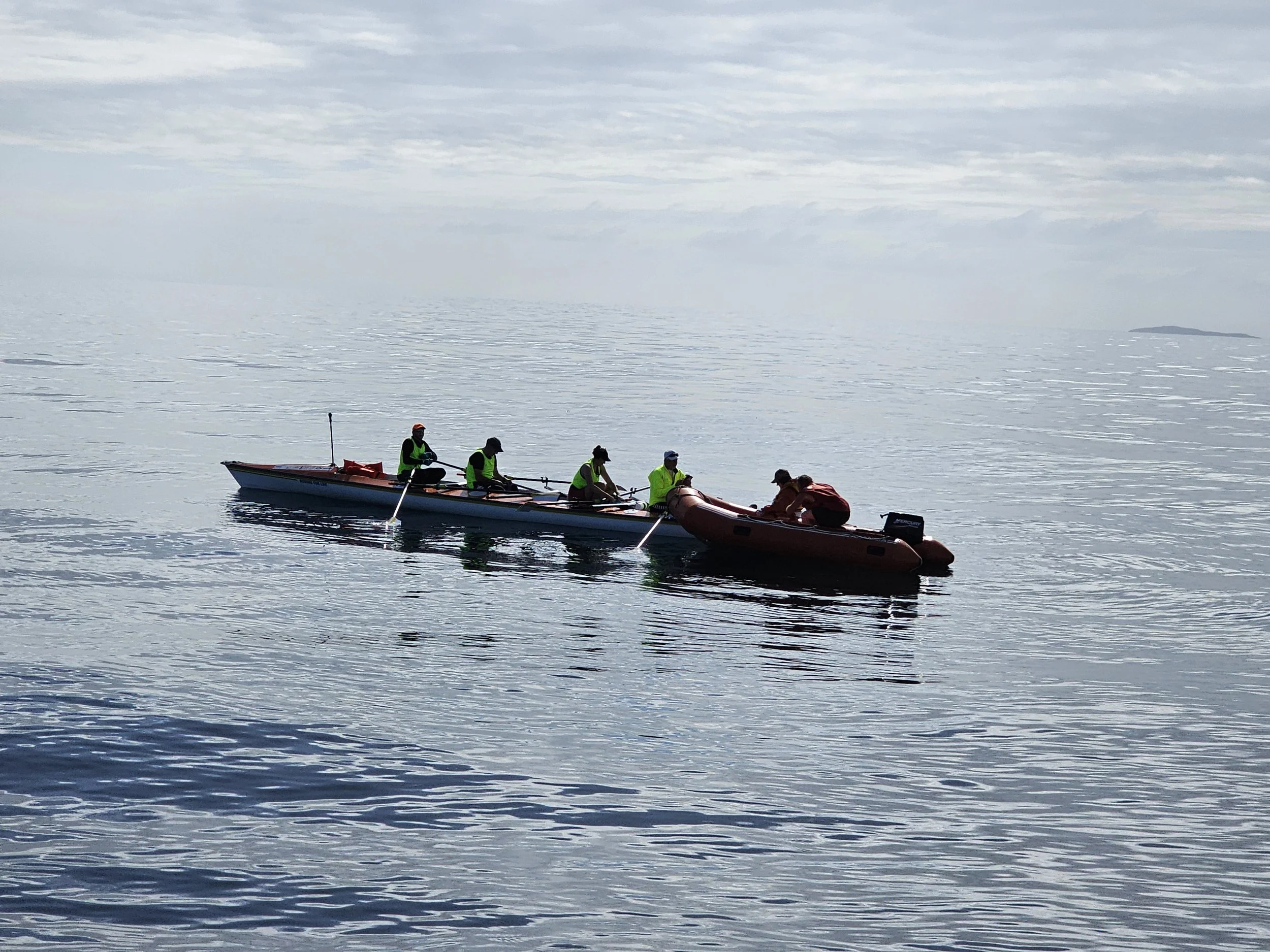 In 2010 three other Masters rowers and myself from the Invercargill Rowing Club rowed across Foveaux Strait, in a quad sculls rowing skiff. The journey was 37 kms and took 3:53 hours, with the Argosy Fishing boat, local Coastguard and other boats in support. Raising funds for our new Rowing Club shed.